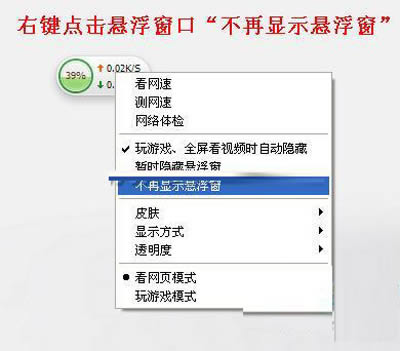 流量悬浮窗的关闭很简单,只需要右键点击悬浮窗,选择“不再显示悬浮窗”即可关闭。