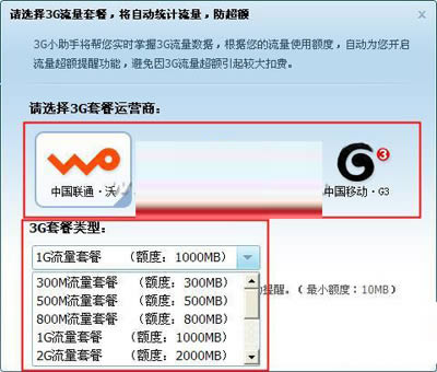 4、选择流量的运营商,并选择相应的流量额度,完成后点击确定即可。