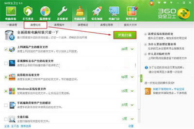 2、打开电脑清理功能后,选择进入“清理垃圾”项,开始扫描,如下图二所示: