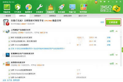 3、扫描完成后,根据软件提示,选择“立即清理”(如图三)。