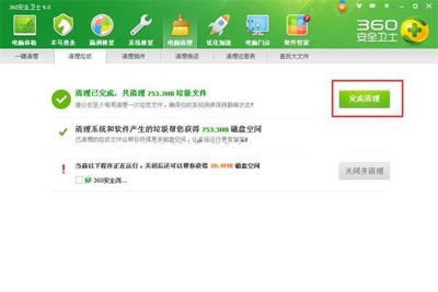 4、系统垃圾清理完成,成功为电脑节省了空间(如图四)。