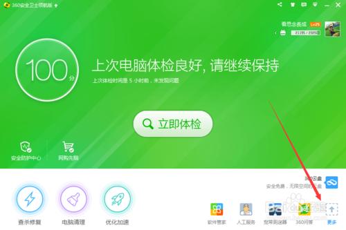 第一步、打开360安全卫士,点击右下角“功能大全”旁边的“更多”,电脑上没有360安全卫士的朋友请下载安装。(若是台式机请自备无线网卡器)
