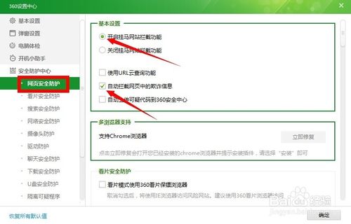 6 隔离可以程序,有些安装软件会篡改你的IE主页,同时可以拦截输入法木,马,这个设置可以锁定防止被修改,同样取消复选框可以关闭!
