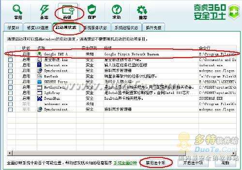 1、先单击“高级”→“启动项状态”,进入启动项状态界面,等待程序读取和显示完所有的启动项。如下图所示: