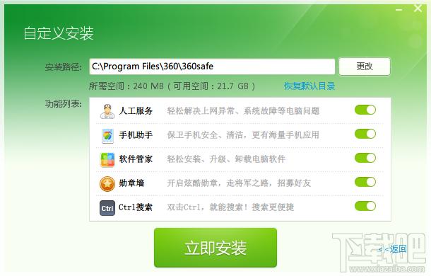 选择想要安装的功能,你也可以自定义软件的安装位置,如下图所示。