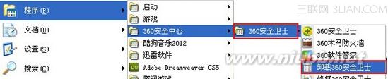 卸载方法一、点击电脑左下角的“开始”,然后在开始界面中,我们选择“程序”选项,在右边所有的程序中,我们找到360选项,然后在右边即可看见一个卸载的选项,点击之后我们依次按照步骤进行卸载即可,如图所示: