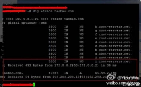 网友通过对taobao.com进行测试发现,E根域名(192.203.230.10)也被污染,同样被解析到65.49.2.178这个IP。
