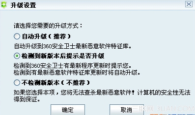 C.不升级:无论是否有新版本,将不做任何提示,并且也不主动帮助用户升级。