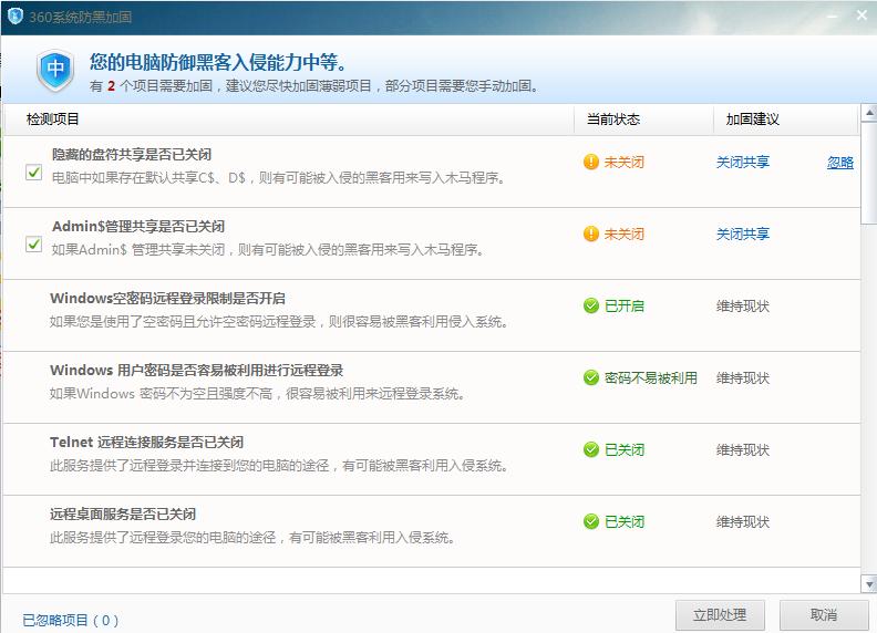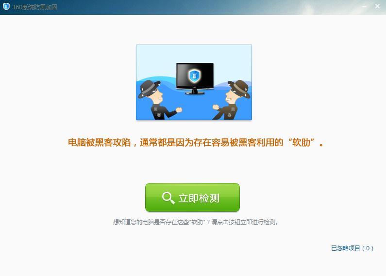 4、然后点击立即检测,软件接下来就会检测出我们电脑系统所存在的问题,具体有哪些我们可以看一下检测结果。我们可以根据当前状态以及加固建议进行相应的操作处理。