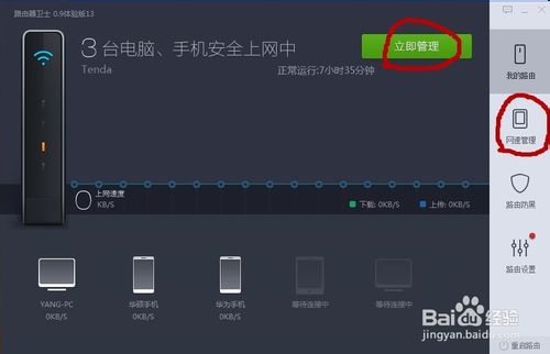 4、单击【立即管理】或【网速管理】,可对联网设备断网或限速。