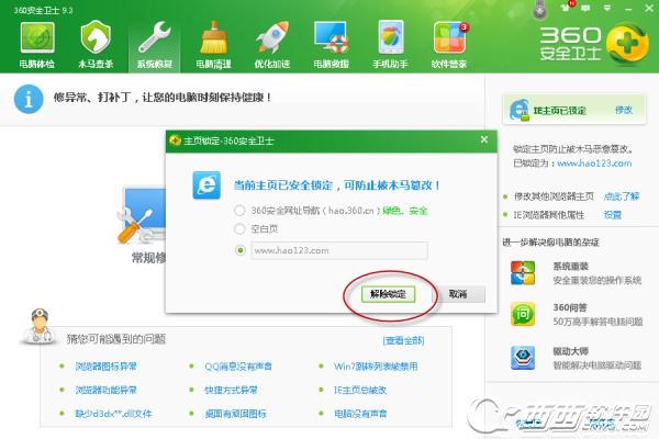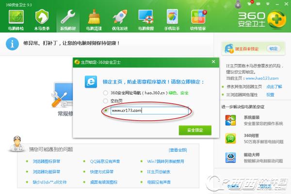 1、打开360安全卫士 - 系统修复,右上角IE主页修改。