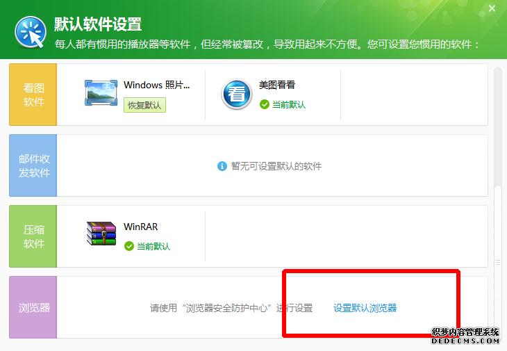 设置完成之后,360安全卫士会自动保存你的设置。下面就以默认浏览器为例,看360安全卫士如何设置浏览器?