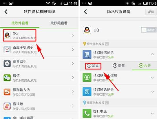 4、在软件上点击,然后在涉及到的隐私功能点击一下,如果不想要这个软件读取数据的话,点击一下“禁止”就可以了。