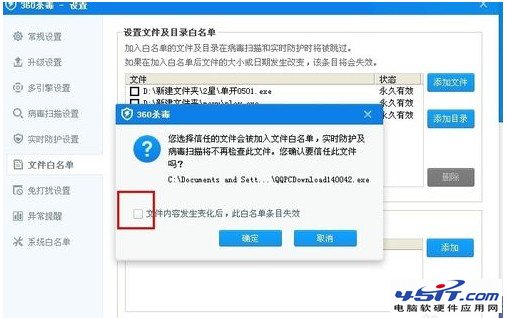 第五步:在“文价内容发生变化后此白名单失效”前面把勾去掉,然后点击“确定”按钮