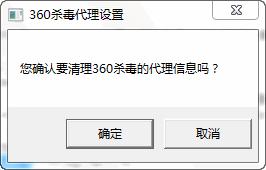 客户端运行“取消代理.VBS”脚本,或者在 Windows “运行”对话框里直接输入命令,360杀毒会询问您是否要清除代理服务器设置: