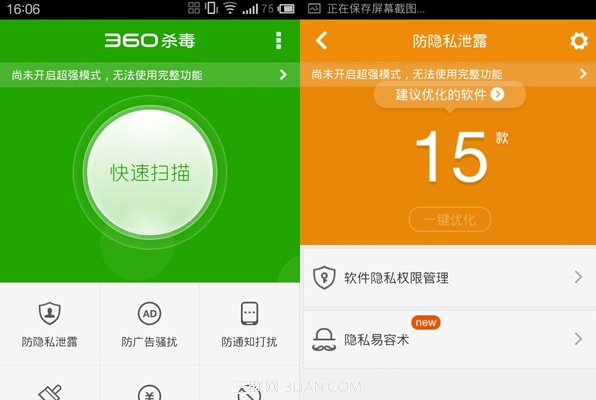 从我们第九软件网中下载360手机杀毒软件,然后在手机上进行安装。打开“360手机杀毒”软件,点击“防隐私泄露”。进入“防隐私泄露”的主界面后,选择“隐私易容术”。