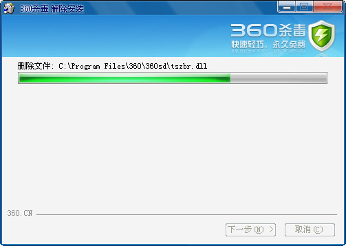 从Windows的开始菜单中,点击“开始->程序->360安全中心->360杀毒”,点击“卸载360杀毒”菜单项: