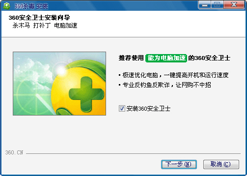 双击运行下载好的安装包,弹出360杀毒安装向导。在这一步您可以选择您的安装路径,建议您按照默认设置即可。