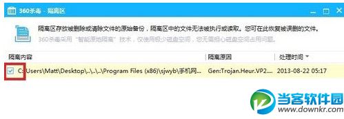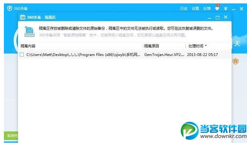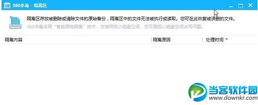 第三步:点击隔离区按钮打开隔离区的界面,你会发现被误杀的软件或程序就在里面。