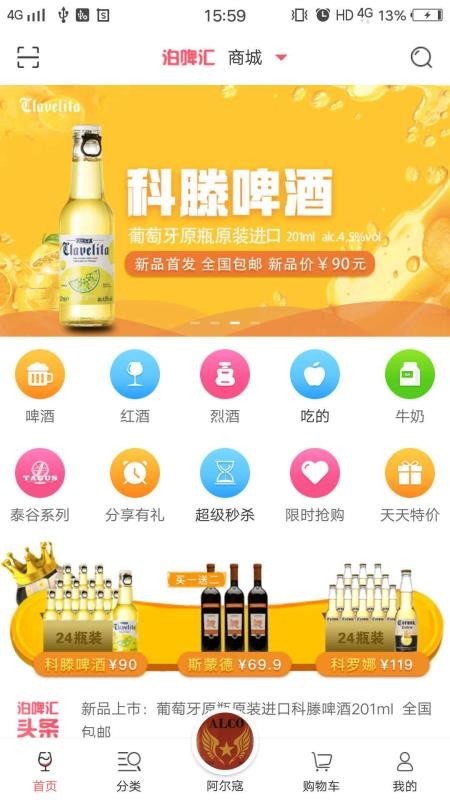 1、进入分类,能够清楚的了解各种酒的分类,用户可以快速的购买;