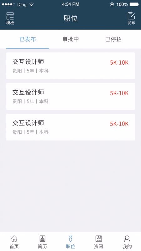 3、可以随时管理职位,支持随时查看已经发布的职位详情和审批中的职位;