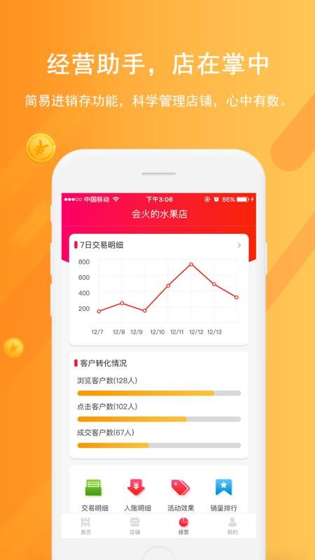 4、进入经营版块,查看7日交易明细,了解客户转化情况,掌握详细的入账信息