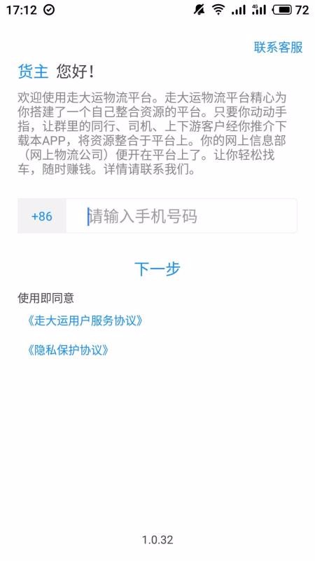 1、立即下载安装走大运货主版app,直接根据提示登录使用
