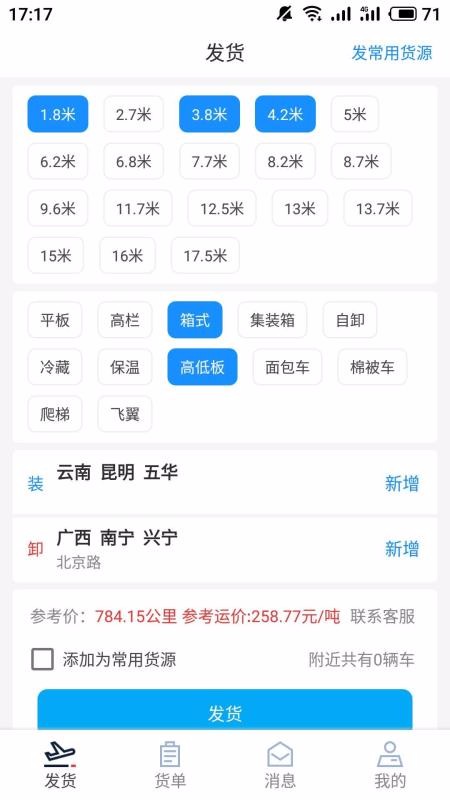 4、实时保存用户的常用货源,支持用户直接使用发布常用的货源;