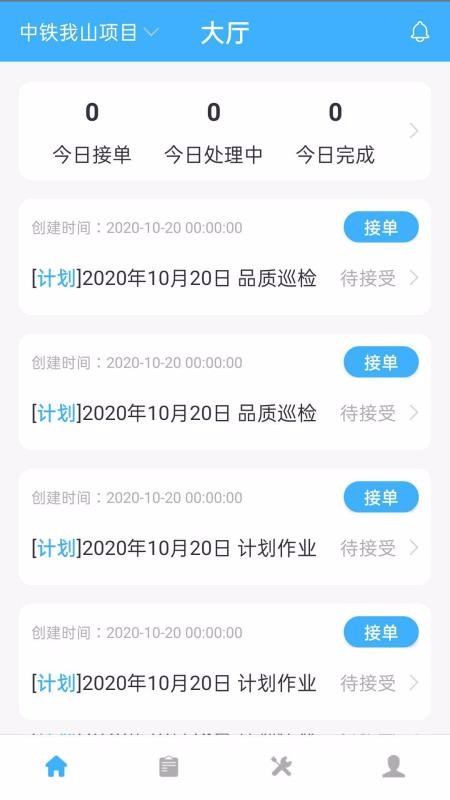 3、统计展示工单处理多种数据,首页大厅中有今日接单、今日处理以及今日完成多种数据;