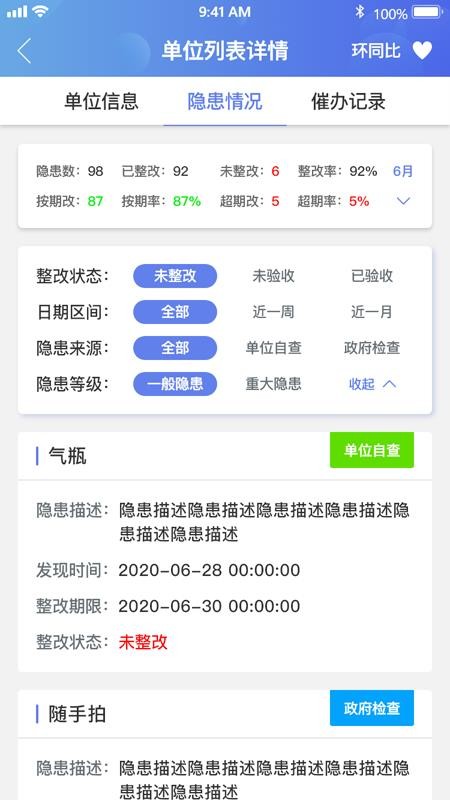 5、用户通过软件可以看到各个单位的详细信息和单位隐患情况,并且能够在线查看催办记录;