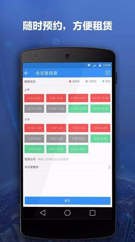 3、返回进入租赁会议室功能页面,立即选择预约租赁并挑选时间段预约