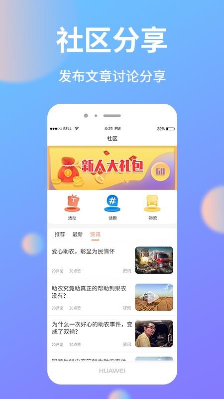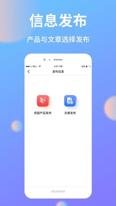 5、支持发布文章和农副产品,先随时选择不同的内容发布,在线分享信息;
