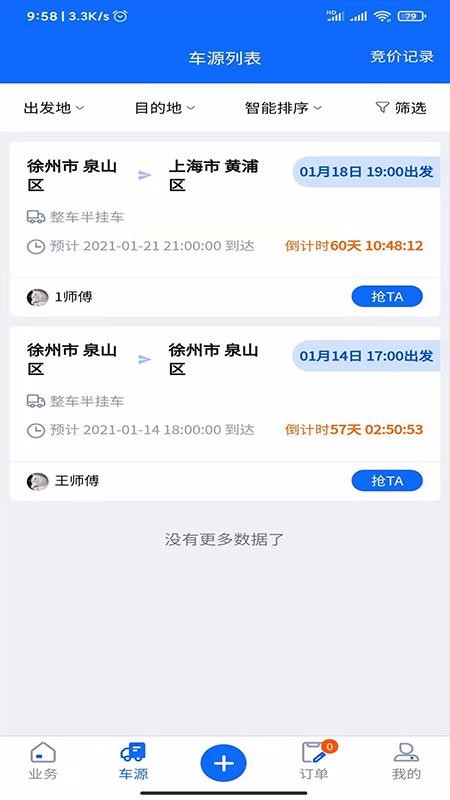 5、抢订配送车源服务订单,能使用车源中的订单抢订功能快速预订相应的服务;