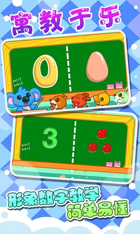 儿童宝宝数字游戏app是专为3-6岁宝贝提供的一款数学学习软件,这里能够为孩子们提供大量有趣的学习方法,能够更加幼儿学习与发展的基本规律和特点,提供科学的教学资源,可以更好的激发孩子的学习兴趣,让你的孩子在娱乐中学到知识;这里为孩子们提供了海量的动画资源,能够更好的把数学融入到动画中,让你的孩子通过观看观看动画的方式学习数学,可以得到更好的学习效果;能够通过英语数数,认识物品的个数,和数字连连看的大小关系,让宝宝慢慢养成爱计算的思维方式,从而更好的学习各种数学知识,让你的孩子变得更加的聪明。