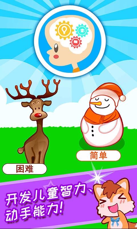 1、设置了快捷的简单与困难两种模式选择,两种模式上面显示了雪人与麋鹿的背景图;