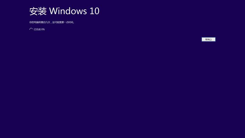 开始安装Windows10,系统安装过程比较漫长且会进行多次自动重启,属于正常现象切勿强制关机等违法操作!