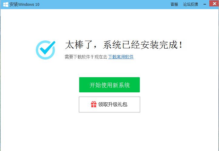 在一段时间的安装重启后,系统安装完成,升级成功则进入Windows10,同时别忘了领取电脑管家为大家准备的升级礼包哦~