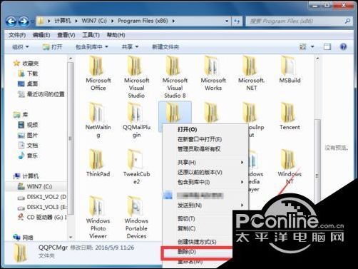 6、腾讯是不是有点坑,没关系,直接右键删除文件夹就没有后患了。