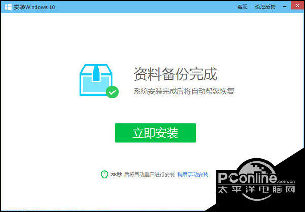 在资料备份完成后,点击“立即安装”则开始系统安装;
