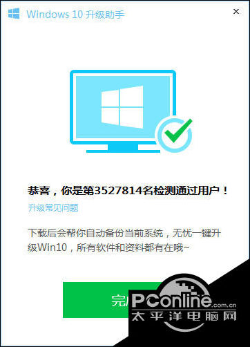 安装升级助手,会弹出检测弹窗,提示用户检测电脑是否符合升级标准;
