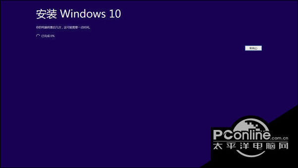 开始安装Windows10,系统安装过程比较漫长且会进行多次自动重启,属于正常现象切勿强制关机等违法操作!