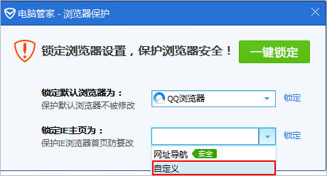 您可以选择推荐的安全导航站“QQ网址导航”进行锁定,也可以在下面的框中选择或者输入您常用的网址进行锁定: