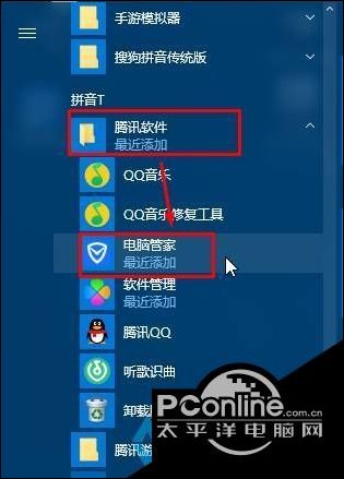 1、点击开始菜单,找到“腾讯软件”,在下面就可以看到“电脑管家”;