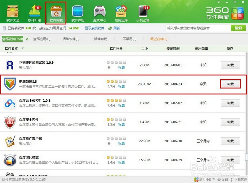 弹出如下对话框,选择“软件卸载”,然后找到QQ电脑管家,点击后面的卸载。