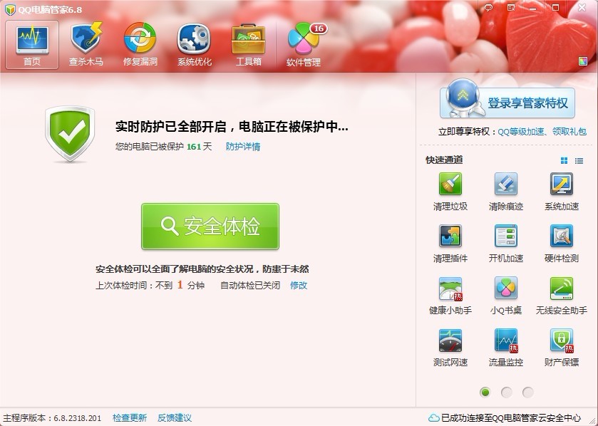 答:QQ电脑管家5.0推出系统首页,一次点击完成全部优化项,包括开机加速、系统加速、IE插件清理、系统垃圾和清除痕迹。简单操作,全面解决电脑问题!