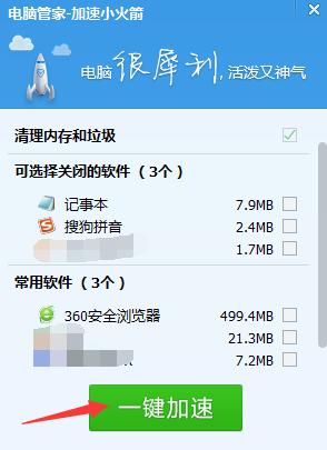 再点击一键加速就可以了哦!当然,如果你不满意的话,可以勾选掉正在运行的软件进行加速。