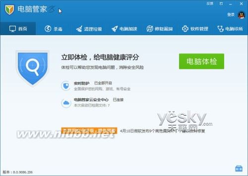 图示:腾讯电脑管家8.0全新界面简洁清晰
