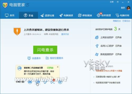 图示:腾讯电脑管家8.0多引擎病毒查杀
