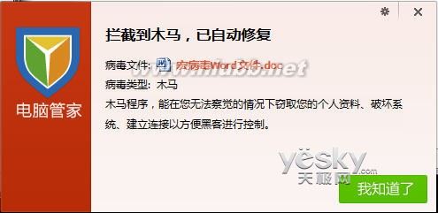 图示:腾讯电脑管家8.0拦截Office宏病毒
