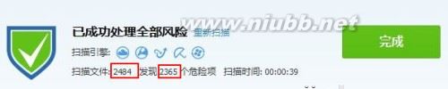 稍等片刻,腾讯电脑管家8.0将查出来的2365个风险项全部处理完毕。